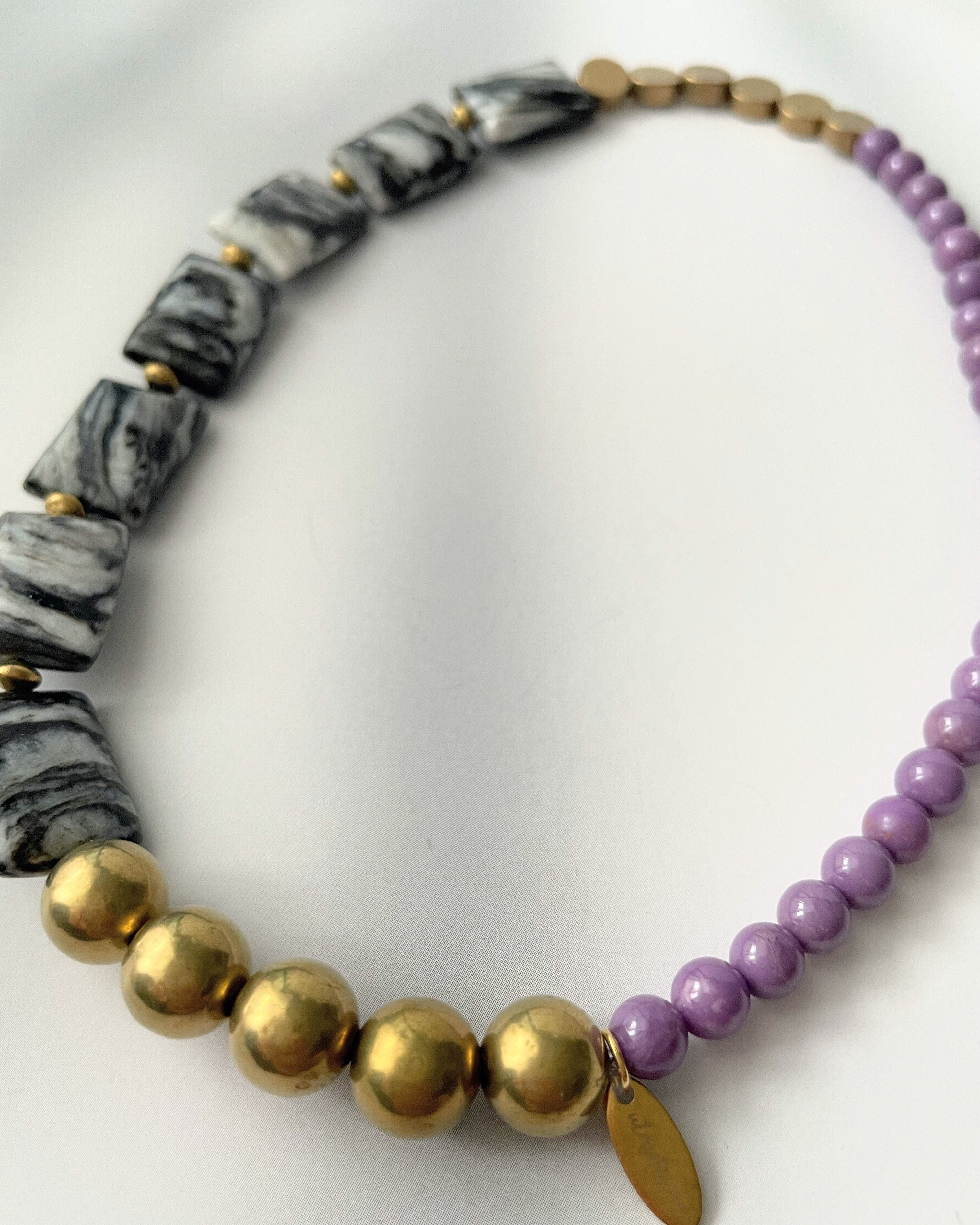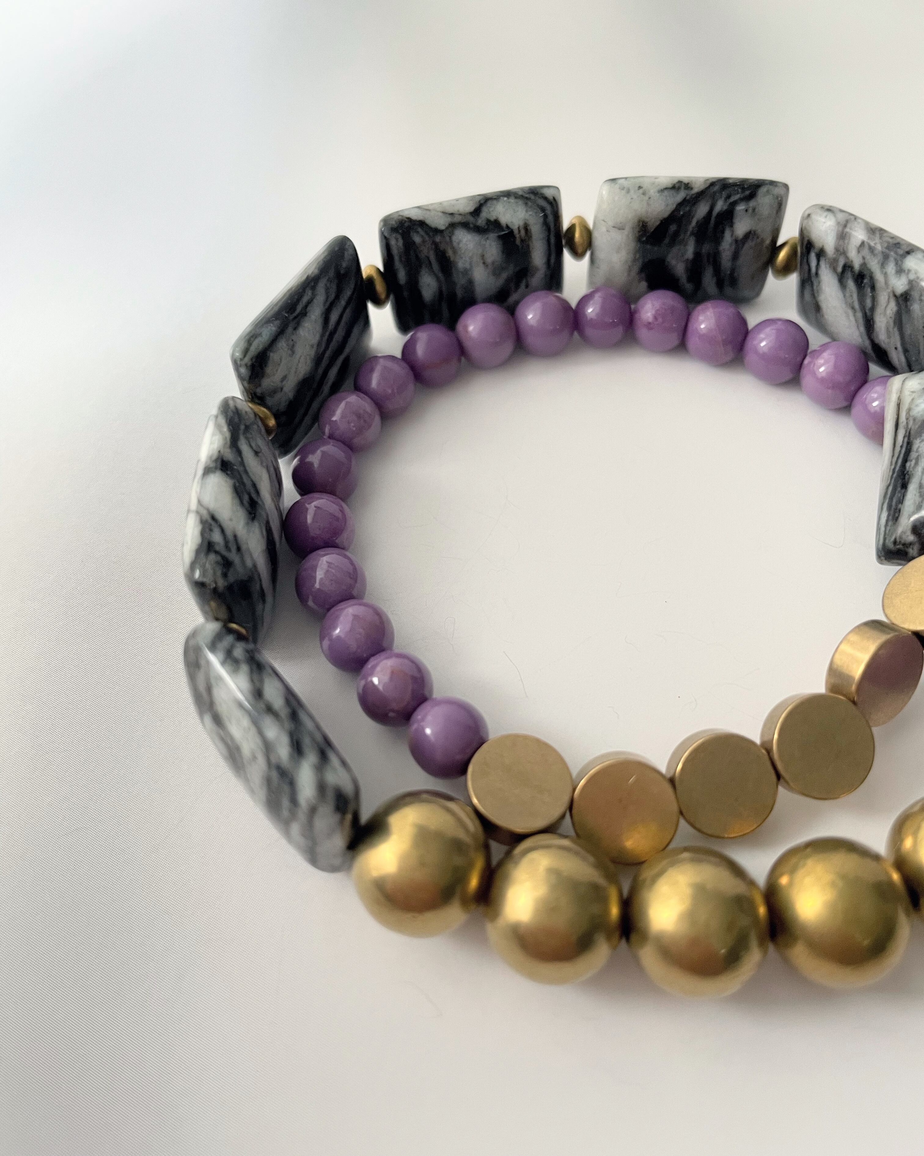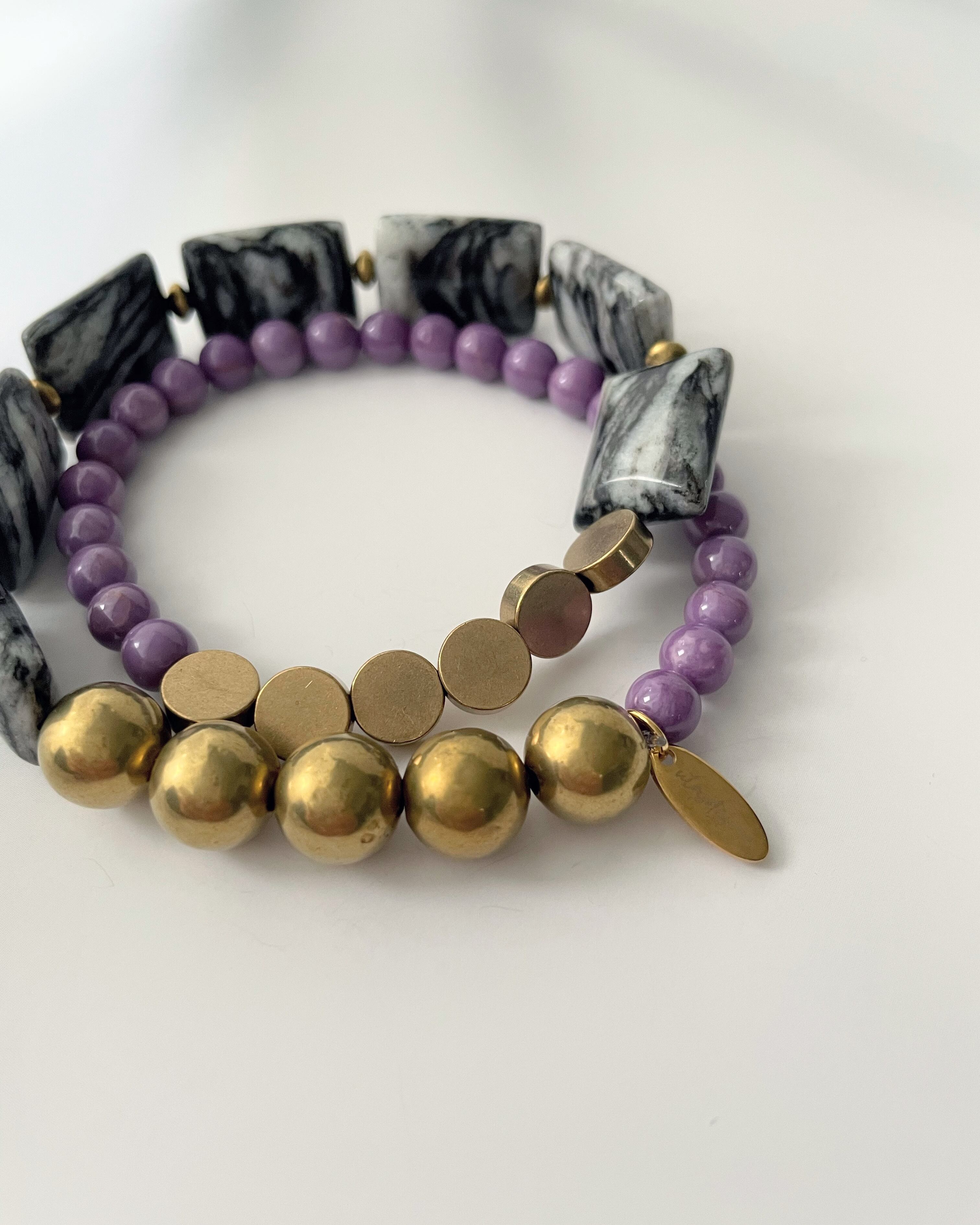 Zebra jasper×Phosphosiderite×Brass bracelet