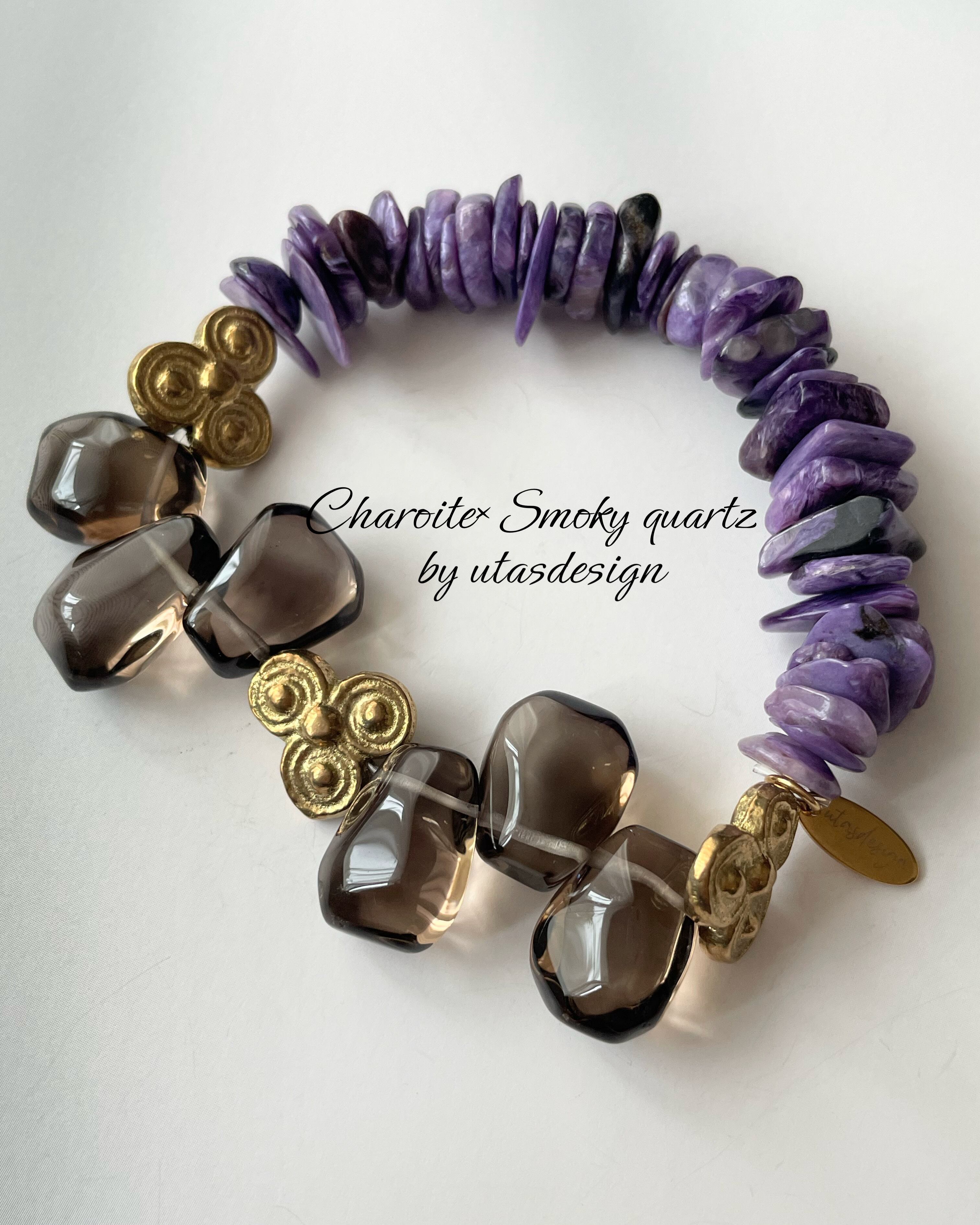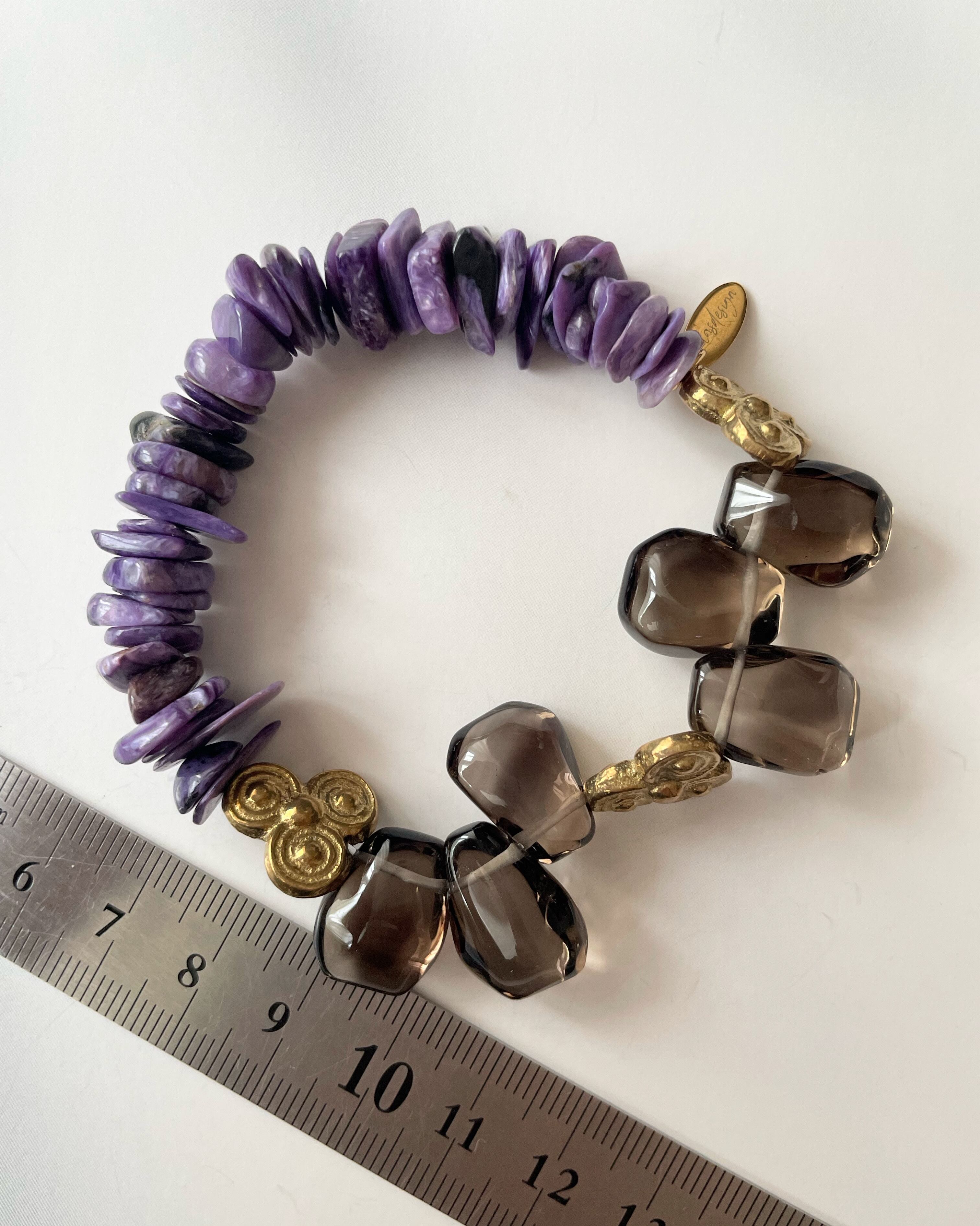 Charoite×Smoky quartz×Brass bracelet