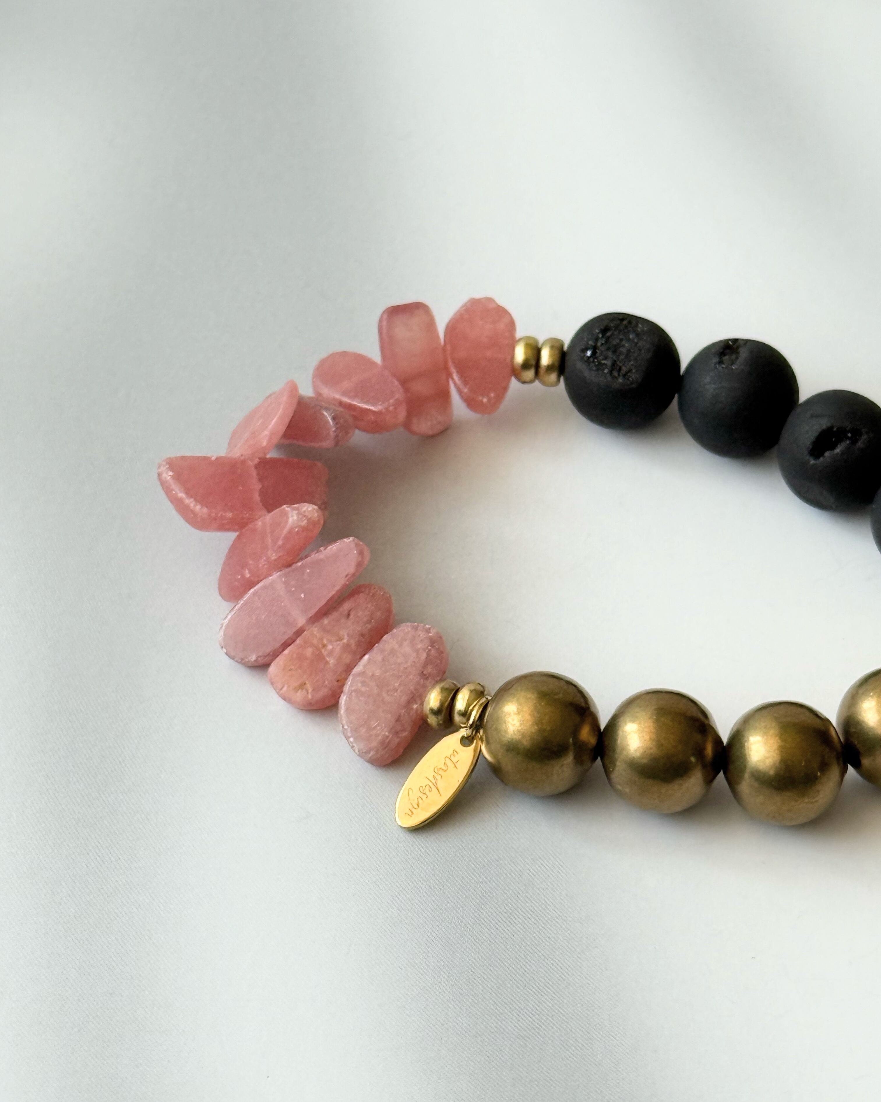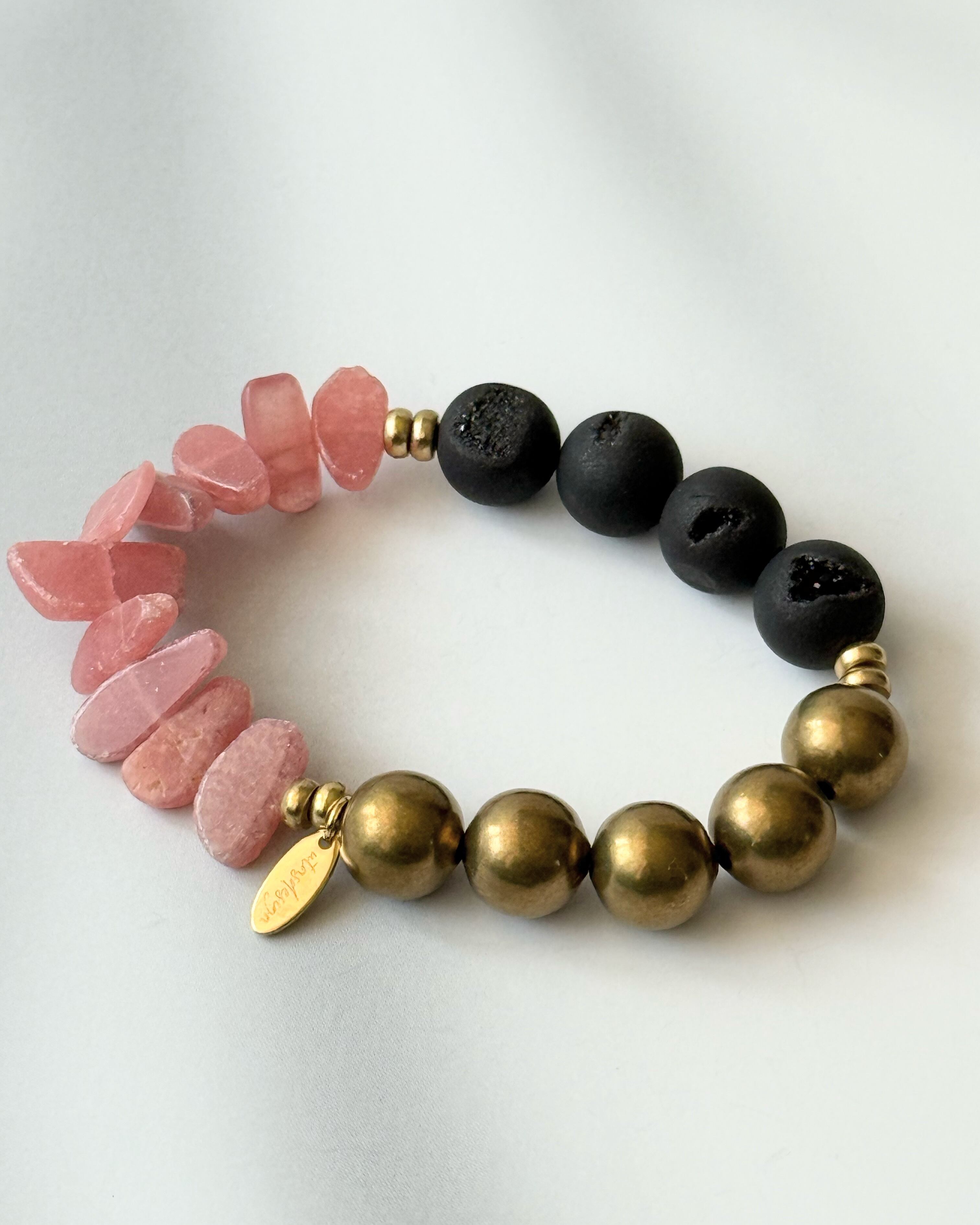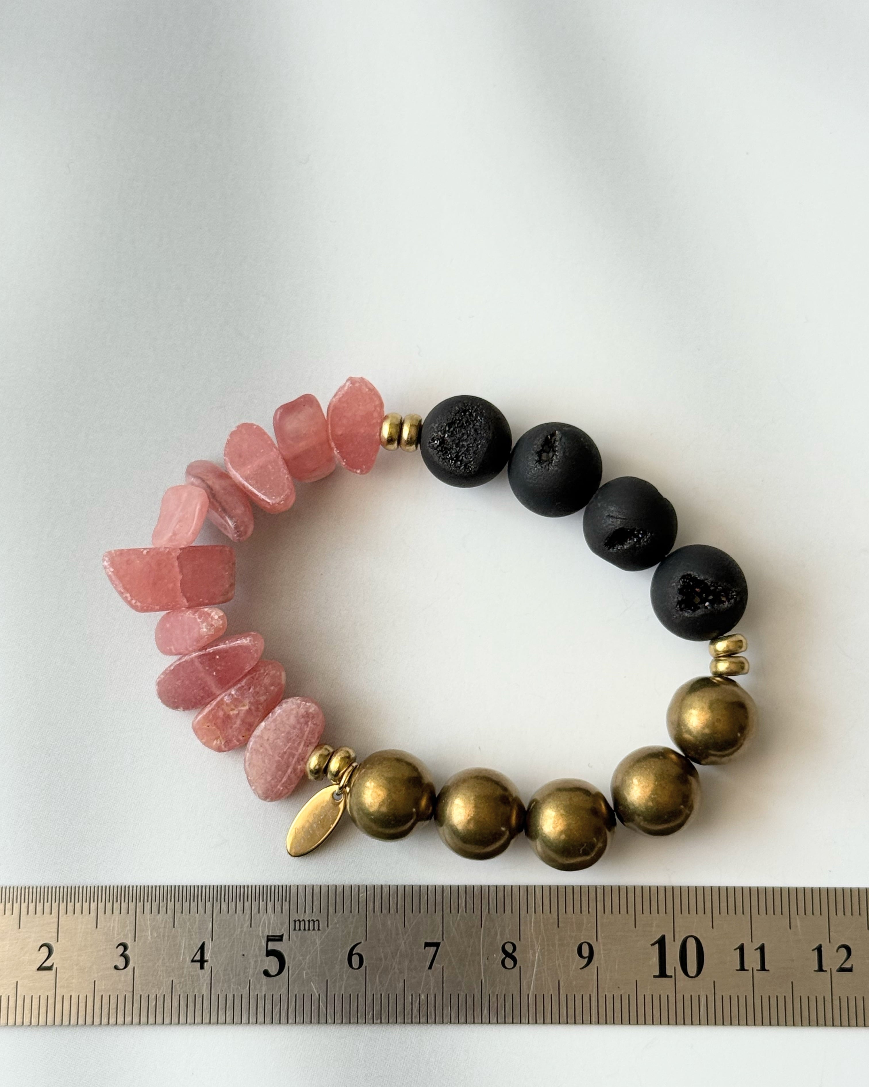 Rhodochrosite×Druzy agate×Brass bracelet